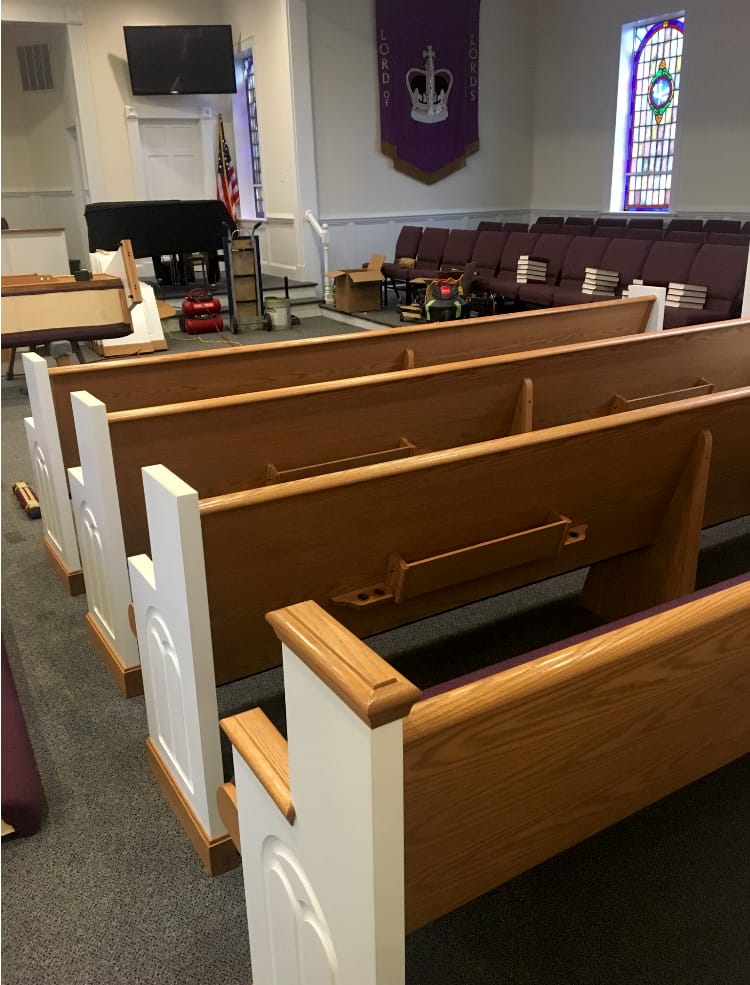 Air conditioning was installed in the education wing, the church grounds underwent beautification, the constitution was revised, carpet was laid in the nursery and upstairs hall, and the bathrooms were tiled. In 1983, the sanctuary pews were refinished and padded seats and backs were added.